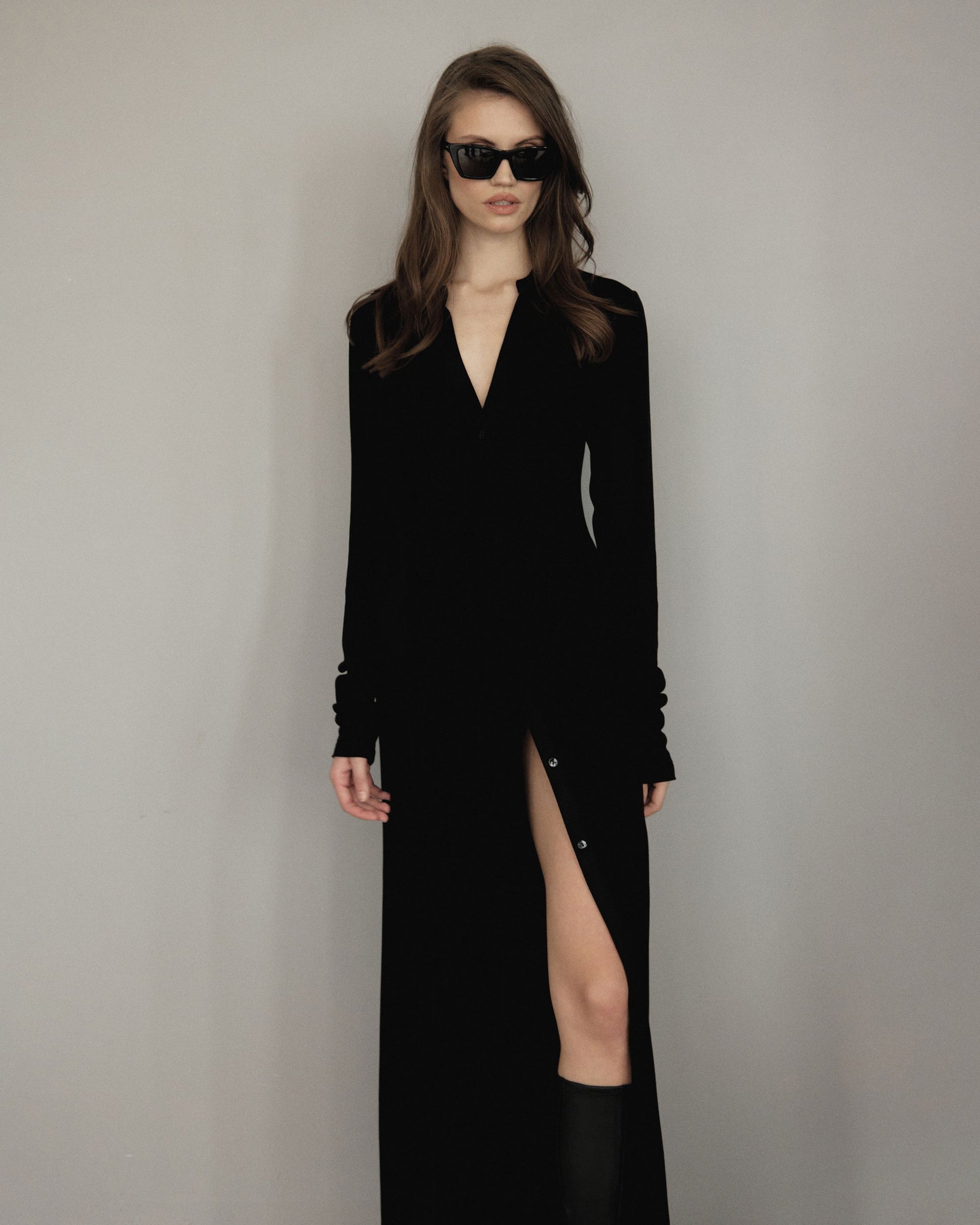 Kalhoty mají pohodlný elastický pas, top je doplněn o výrazná vsazená ramena a kardigan je zapínaný na řadu jemných knoflíků a má dlouhé rukávy. Kardigan lze také nosit jako šaty. Celek tvoří moderní a zároveň pohodlný základ šatníku, který se snadno kombinuje pro každý den.