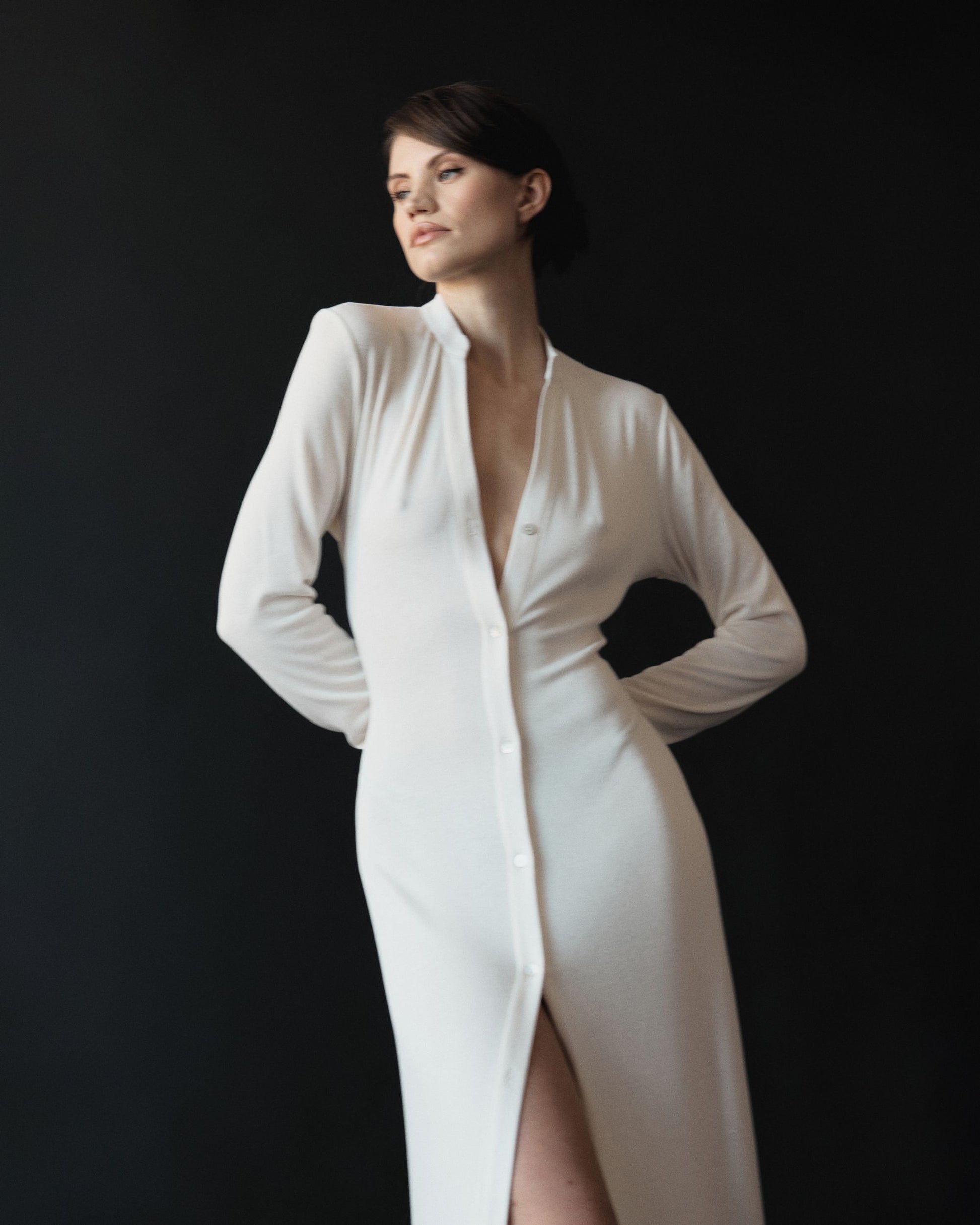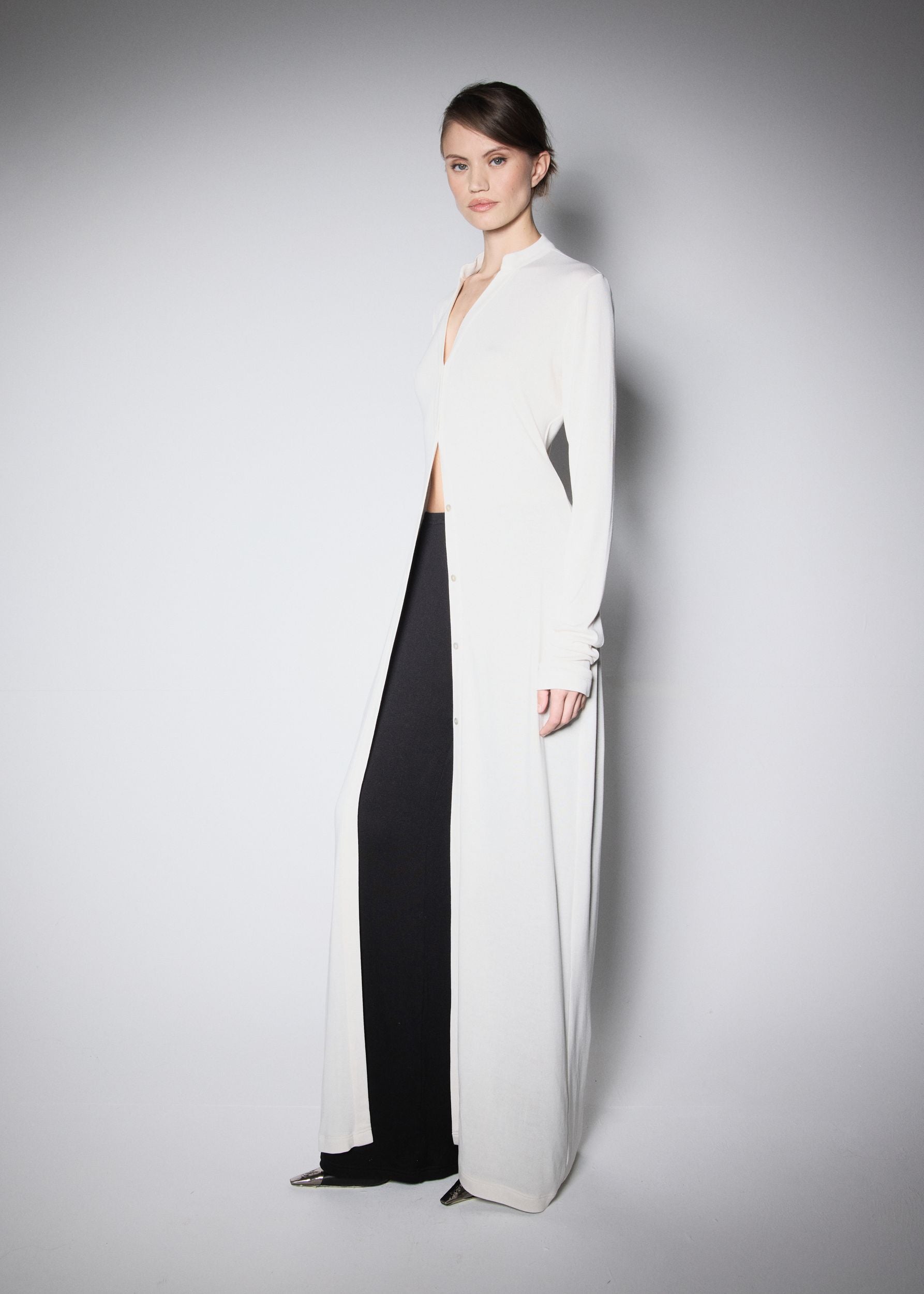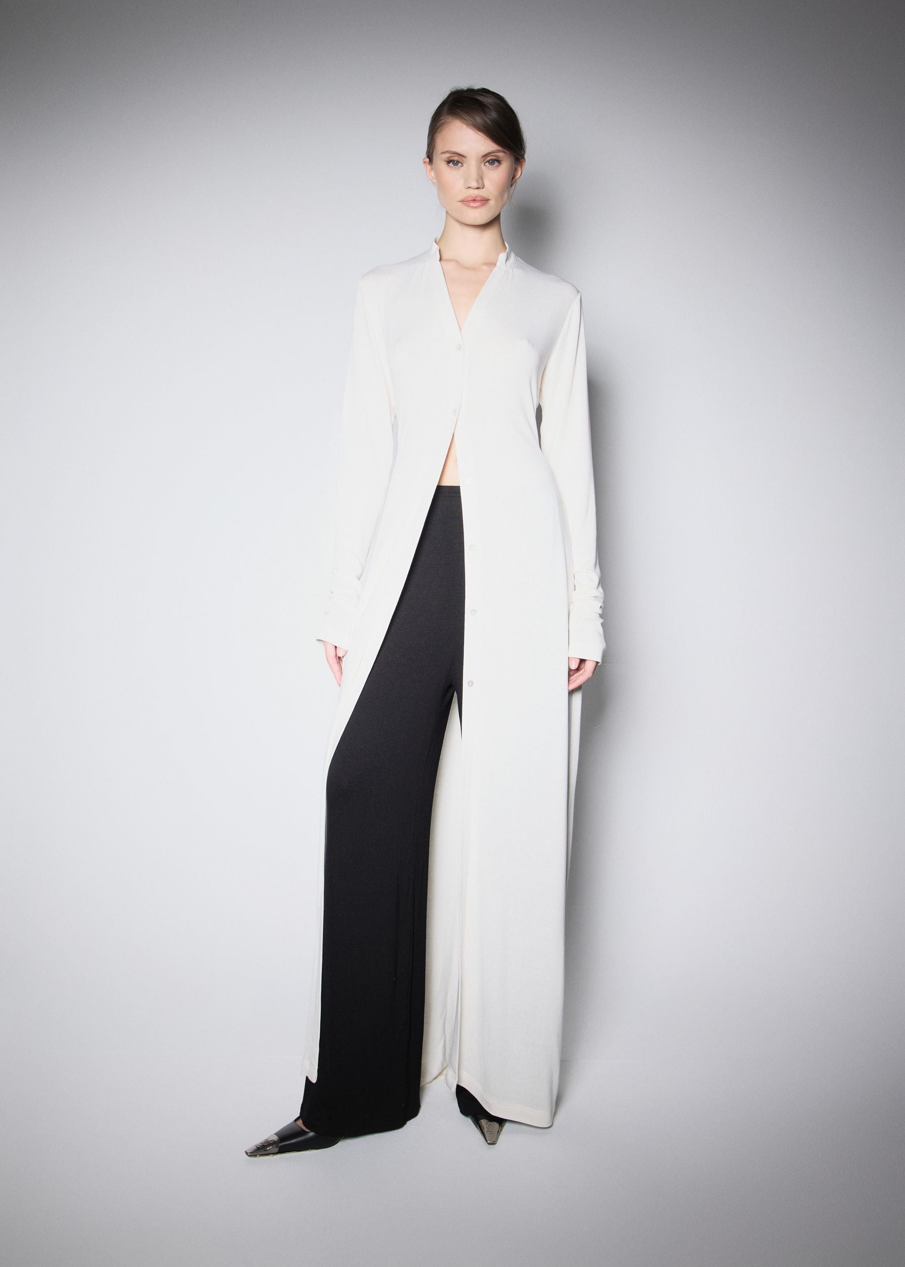 V rámci nové kolekce jsme vytvořili aktualizované basic kousky – set složený z kardiganu, kalhot a topu. Použili jsme látku s 95 % bambusu a 5 % elastanu, která je mimořádně měkká, pružná a velmi příjemná na dotek.