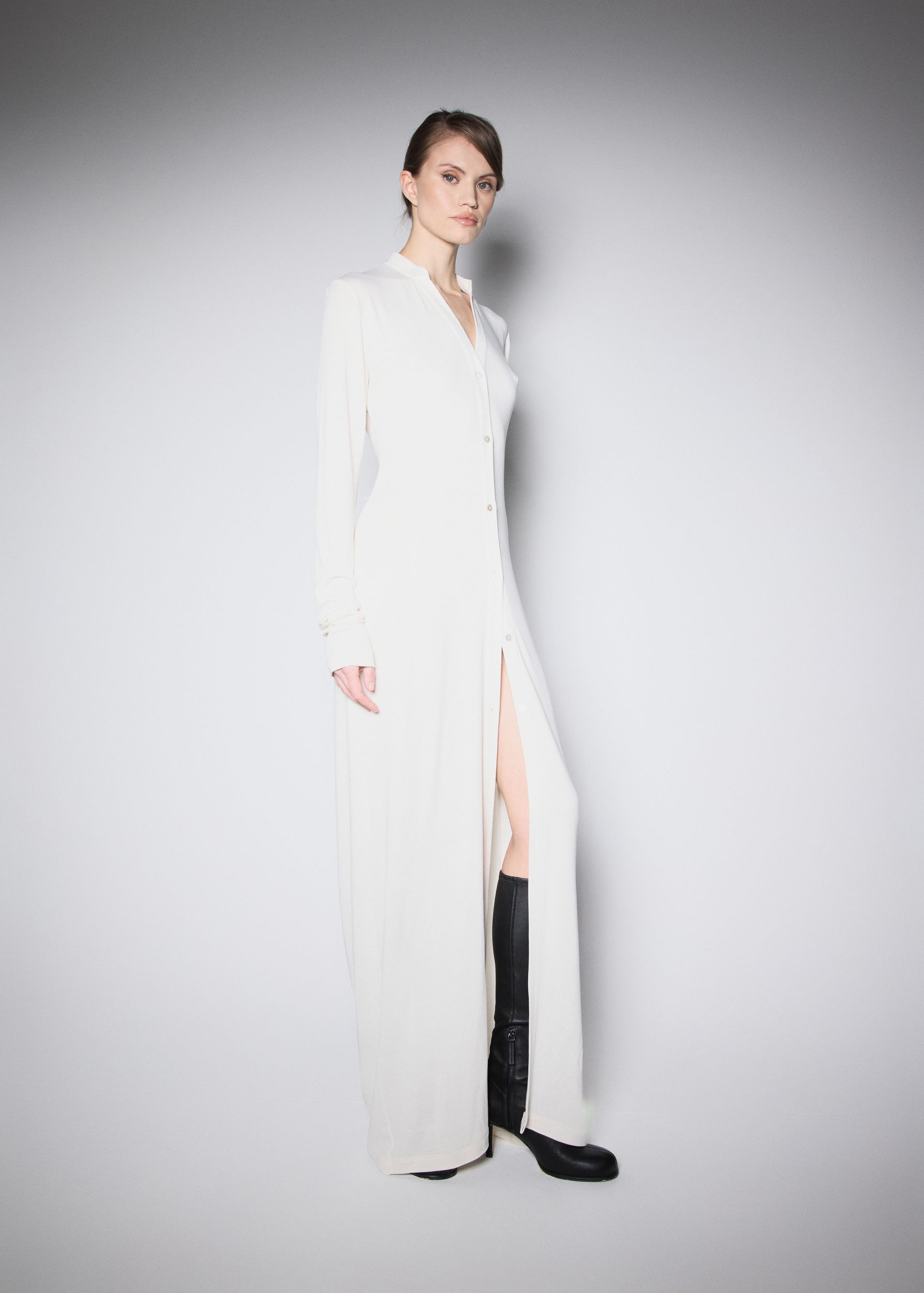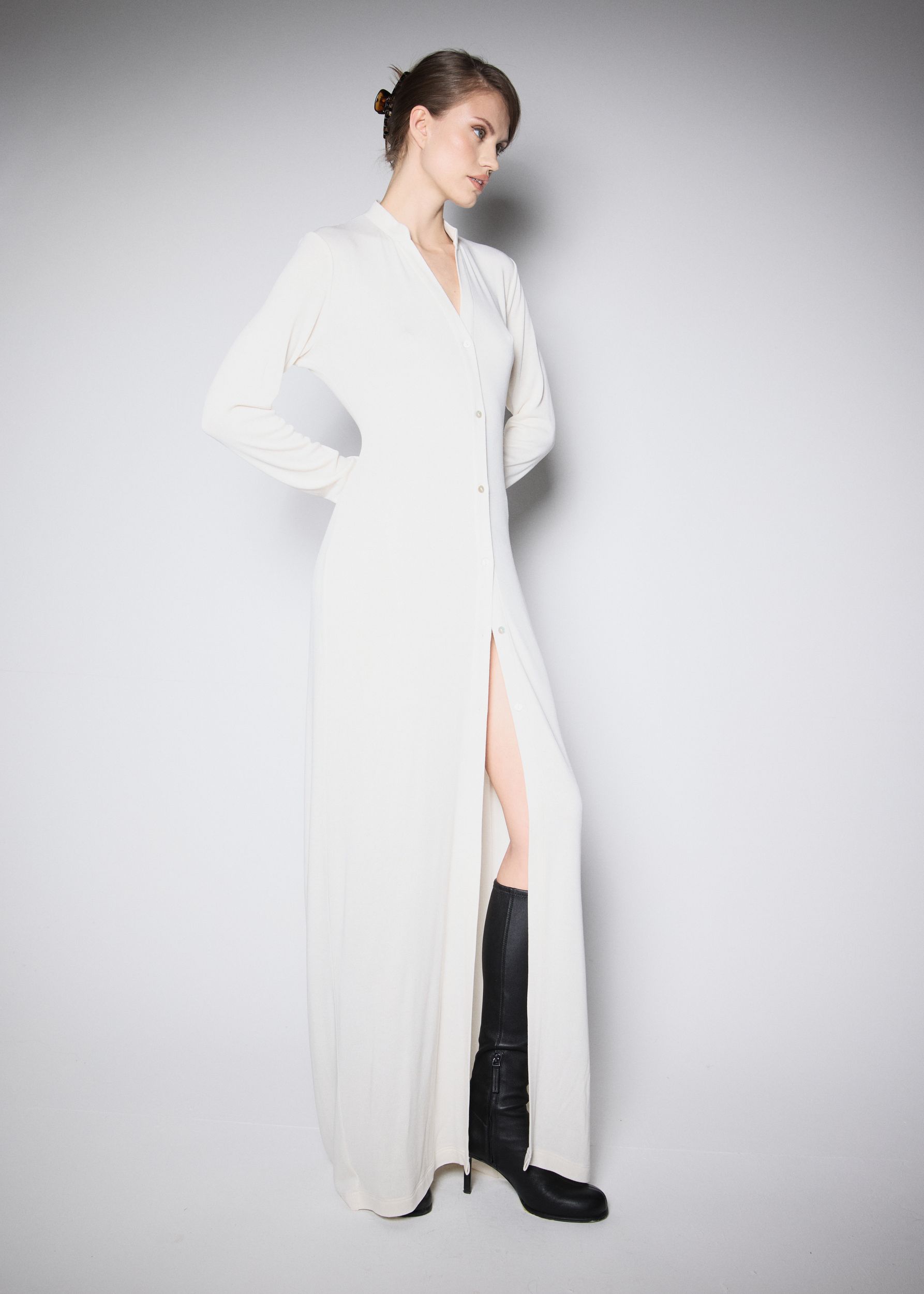 Modelka má na sobě velikost XS a měří 174 cm.
